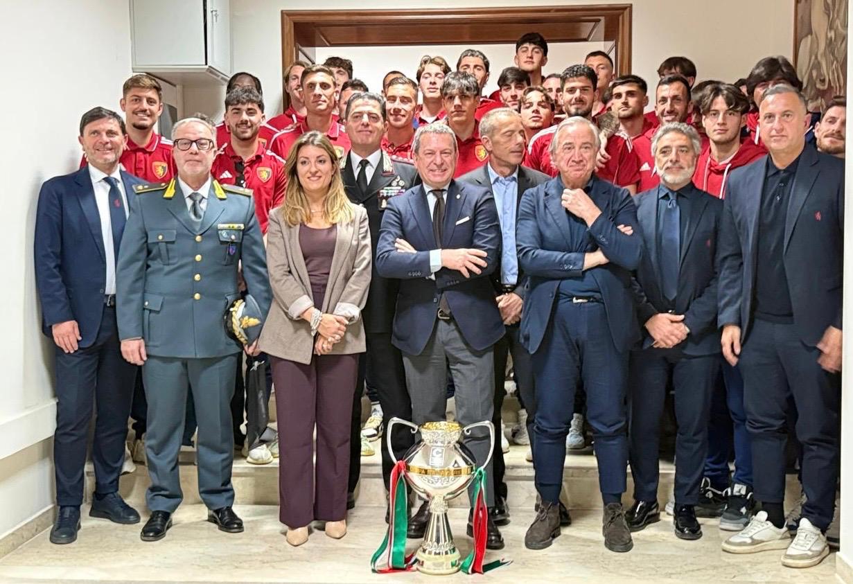 Per un giorno la Prefettura di Potenza si è simbolicamente tinta dei colori rossoblù, accogliendo l’entusiasmo, l’orgoglio e la passione che la recente vittoria della Coppa Italia Serie C ha regalato alla città e all’intera Basilicata.