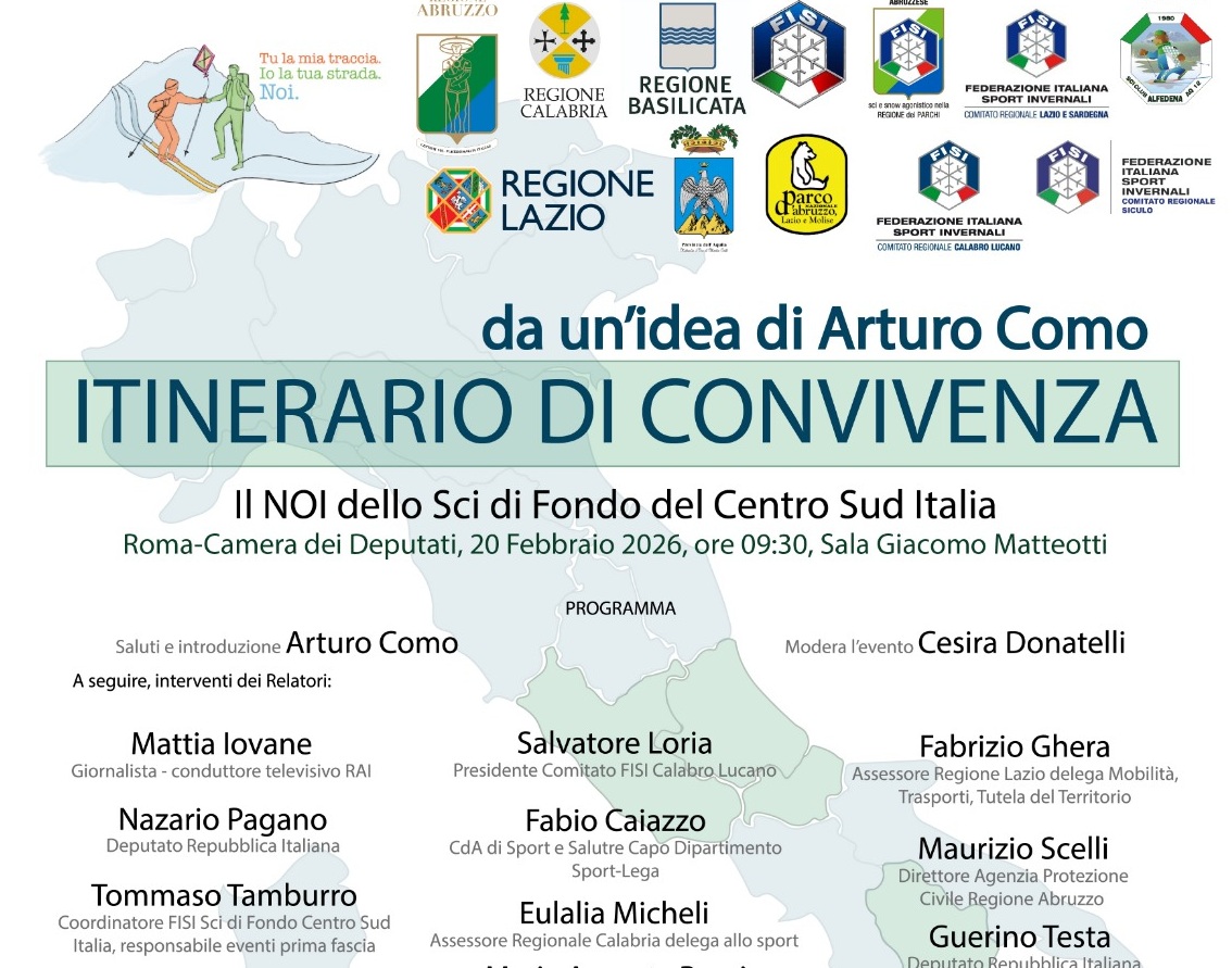 Il futuro dello Sci di Fondo nel Centro Sud Italia passa dalla collaborazione e dall’innovazione. La coscrizione promossa da Arturo Como sta ottenendo risultati concreti, culminando venerdì 20 febbraio nella Sala Giacomo Matteotti della Camera dei Deputati, con l’incontro-dibattito Itinerario di Convivenza – Il NOI dello Sci di Fondo. L’evento vedrà la partecipazione di pr...-->continua