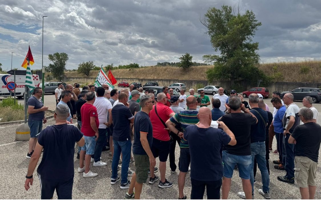 I lavoratori della Pmc Automotive di Melfi in presidio presso lo Stabilimento di proprietà Stellantis