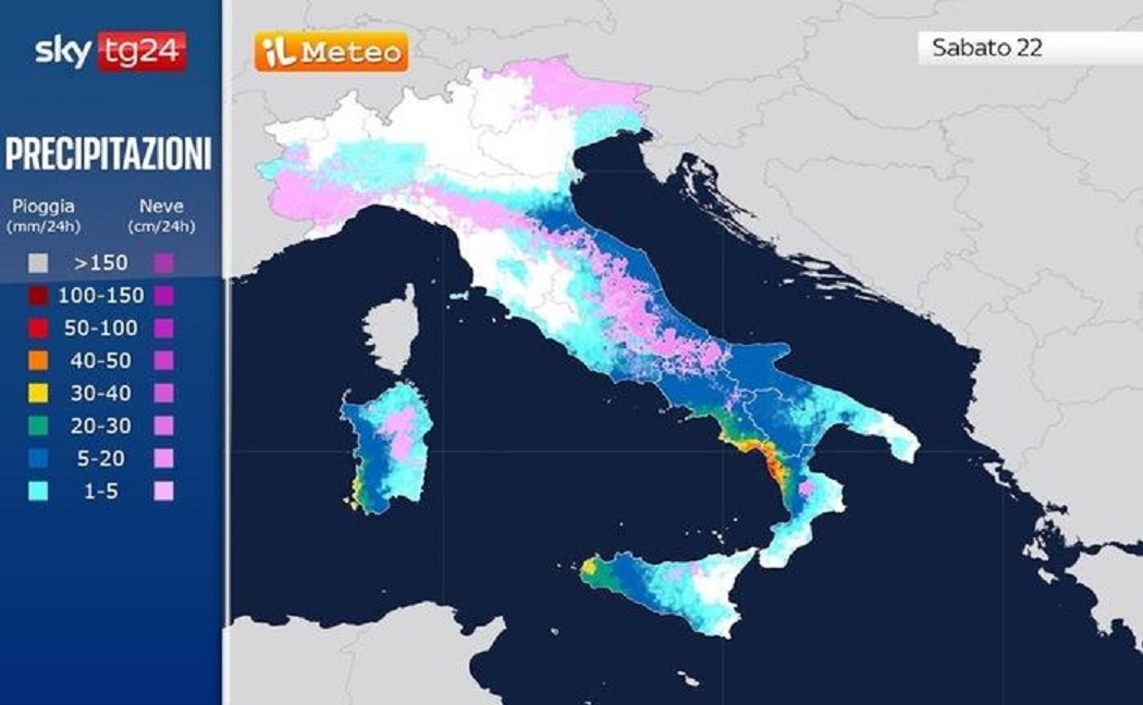 Da sabato è previsto un peggioramento del tempo anche in Basilicata, con freddo, pioggia e qualche nevicata in alta quota. Il ciclone interesserà gran parte dell’Italia: la giornata trascorrerà con precipitazioni irregolari alternate a pause asciutte e schiarite. Le temperature massime saranno comprese tra 6 e 13 gradi, mentre i valori notturni scenderanno ulteriormente, accompagnati da venti forti. Dal 21-22 novembre affluirà aria fredda direttamente dalla Scandinavia, provocando un crollo verticale dei termometri con valori ben sotto le medie stagionali. Il maltempo insisterà sul Centro-Sud e sulle Isole maggiori, con piogge intense e nubifragi, in particolare sui versanti tirrenici di Campania, Basilicata e Calabria, con nevicate previste sui rilievi più alti. Domenica 23 novembre il vortice si allontanerà, portando un clima più asciutto che potrebbe non durare molto.