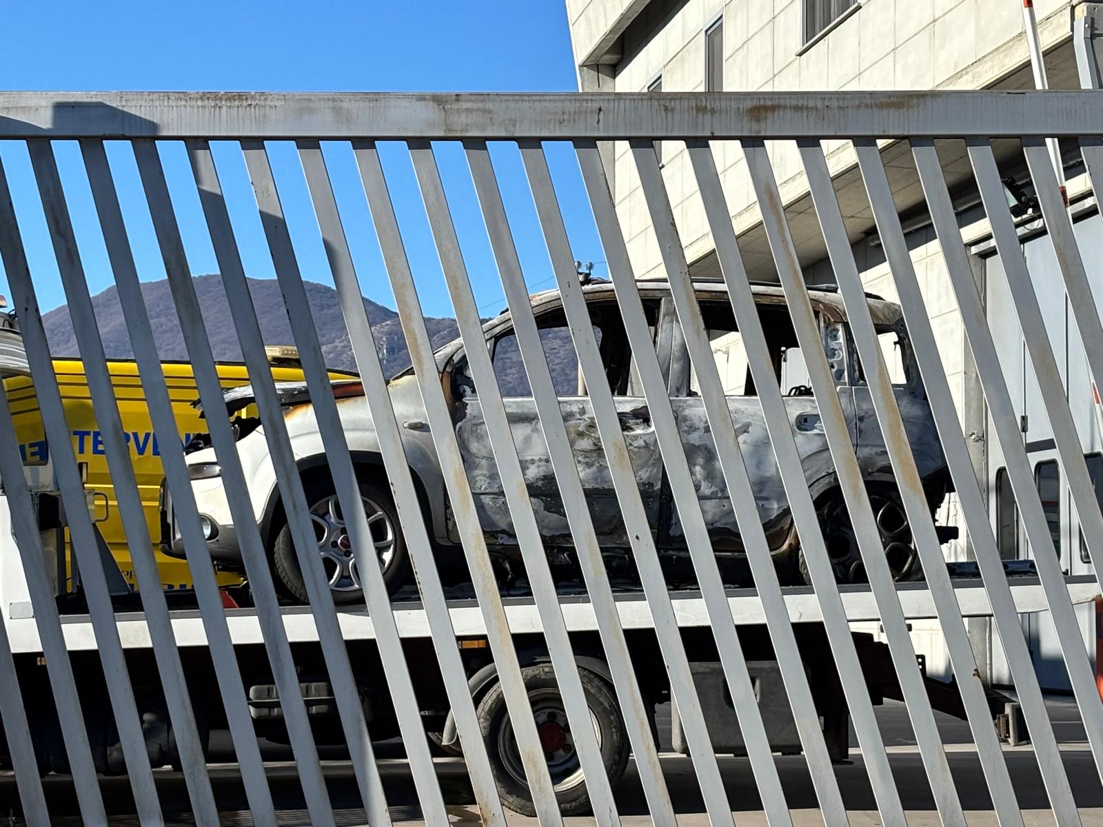nella foto esterna, inviata dal sindaco, l'auto incendiata.