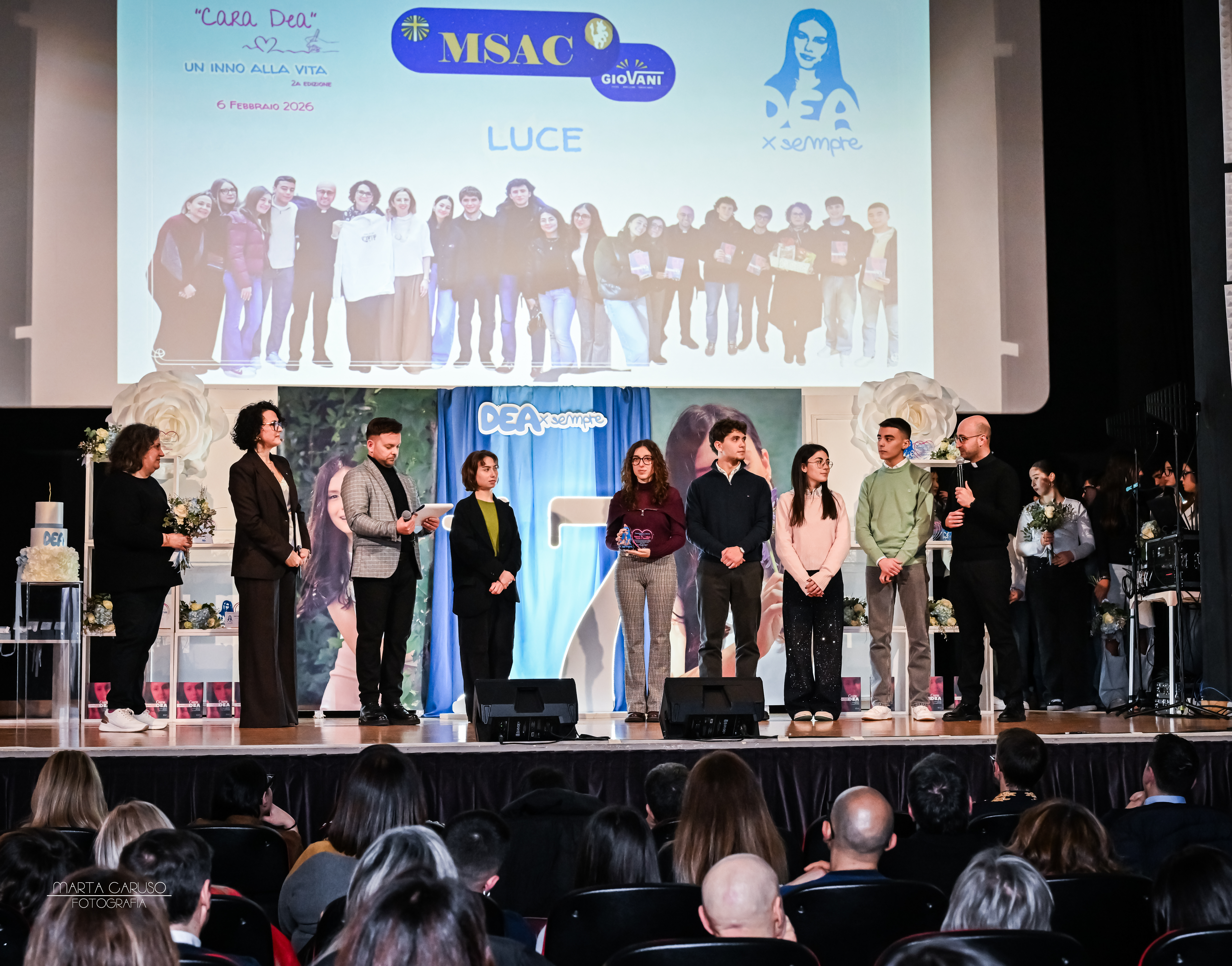 .jpg) La serata, densa di emozioni, è culminata con la presenza sul palco delle amiche del cuore di Dea, che tutte insieme hanno spento la candelina dei 17 anni della loro amica speciale, nel cui ricordo l’associazione “Dea per sempre” va avanti ogni giorno, raccontando l’amore, la speranza e tutto il bello della vita, nel nome di una ragazza meravigliosa che non smetterà di essere un faro per l’impegno di chi l’ha tanto amata. Dea per sempre.