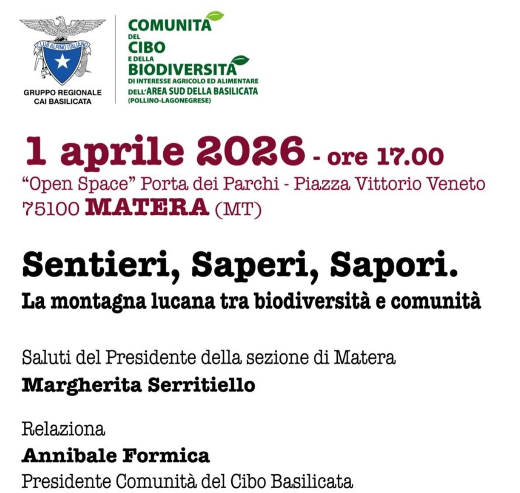 30/03/2026 - “Sentieri, Saperi, Sapori. La montagna lucana tra biodiversità e comunità” - Iniziativa Cai del 1 aprile 2026