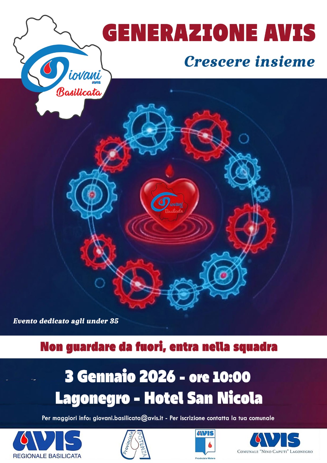 Basilicata, delle AVIS Provinciali di Potenza e Matera e dell’AVIS Comunale “Nino Caputi” di Lagonegro, organizza “GENERAZIONE AVIS - Crescere Insieme”, un evento