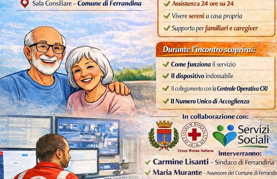 Giovedì 22 gennaio 2026, alle ore 10:00, nella Sala Consiliare del Comune di Ferrandina, verrà presentato ufficialmente il nuovo Servizio Sperimentale di Teleassistenza e Telesoccorso, rivolto specificamente ai cittadini fragili e ai grandi anziani del territorio.