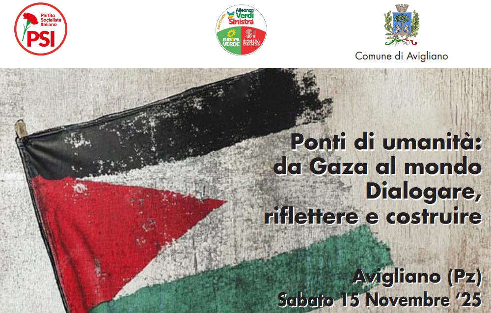 “Ponti di Umanità: da Gaza al Mondo” è il titolo dell’iniziativa promossa dalla Sezione “Sandro Pertini” del Partito Socialista Italiano, in collaborazione con Alleanza Verdi Sinistra, che si terrà sabato 15 novembre ad Avigliano.