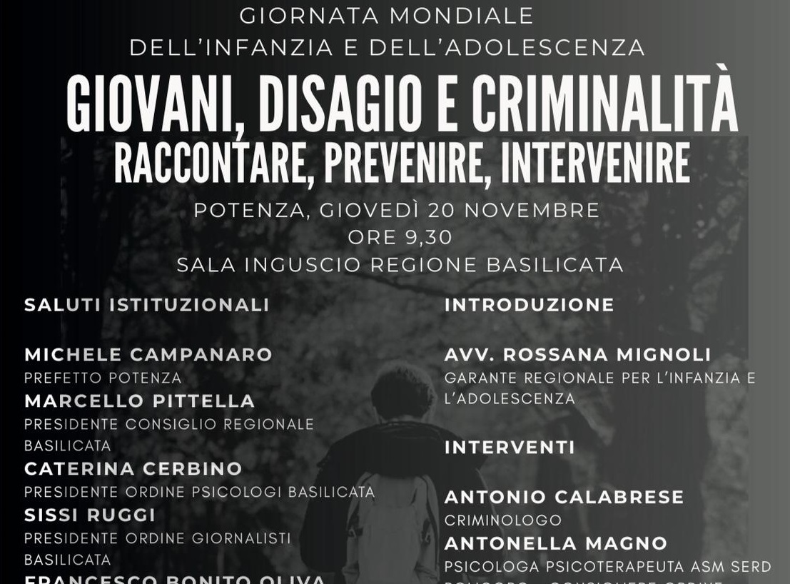 In occasione della Giornata Mondiale dei Diritti dell’Infanzia e dell’Adolescenza, la Garante regionale per l’Infanzia e l’Adolescenza, Rossana Mignoli, guida un’iniziativa “di alto profilo dedicata all’analisi del disagio giovanile e della criminalità minorile in Basilicata...-->continua |