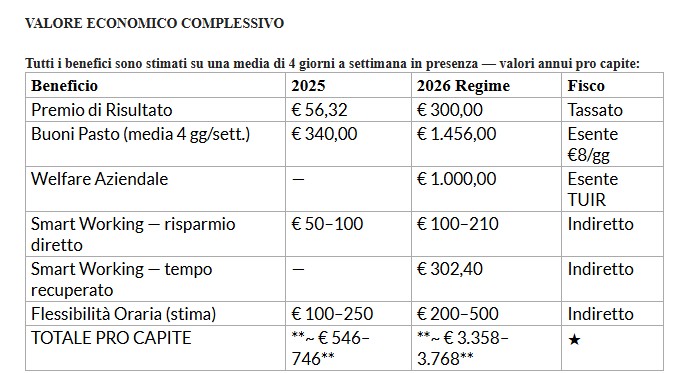 • un sistema di Welfare Aziendale pari a € 1.000,00 annui pro capite.