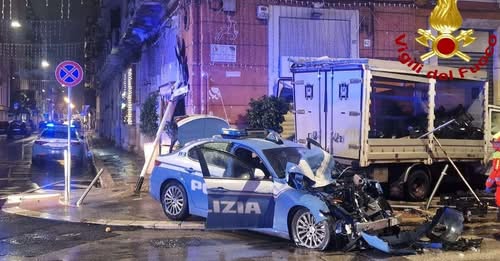 23/12/2025 - Bari, schianto all’alba in centro: volante della polizia contro un camioncino, tre feriti
