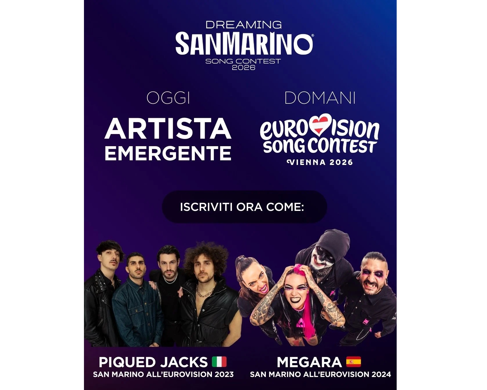 Dal 27 al 31 gennaio 2026 si terrà l'ultima fase di Casting per “Dreaming San Marino Song Contest”, il primo step dedicato agli artisti emergenti verso la finale del “San Marino Song Contest” che a sua volta decreta il rappresentante della Repubblica di San Marino per l’Euro...-->continua |
