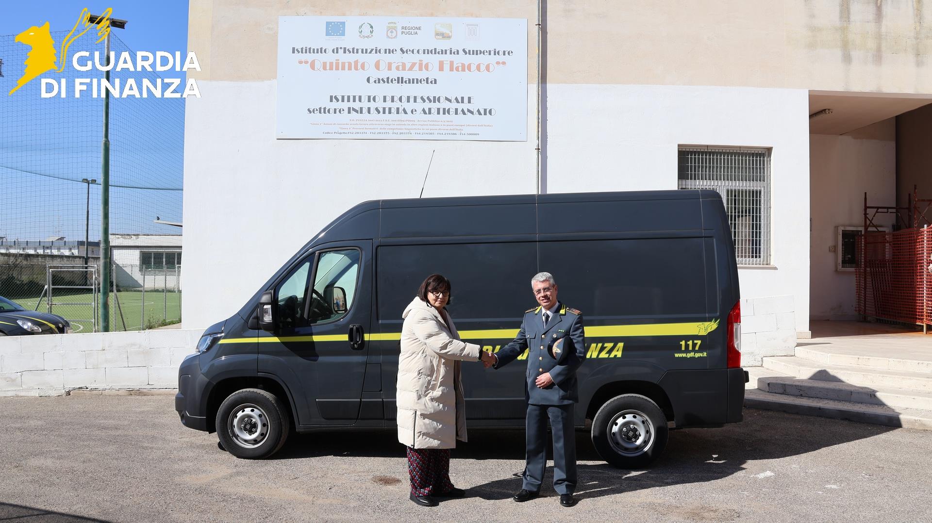 Nella mattinata del 27 febbraio, i finanzieri della Tenenza di Castellaneta hanno devoluto all’Istituto d’Istruzione Superiore “Quinto Orazio Flacco” di Castellaneta diverse attrezzature meccaniche professionali.