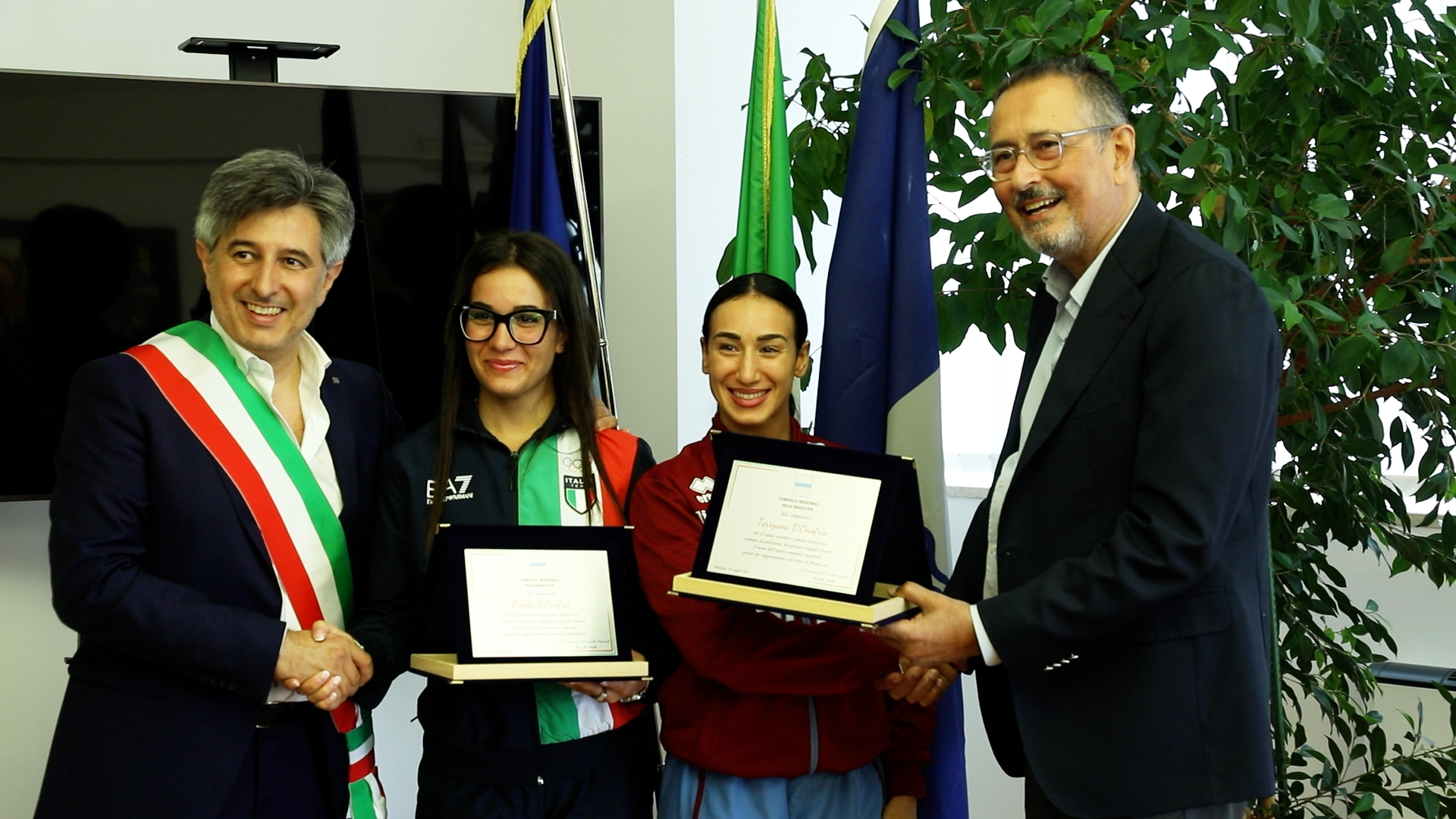 | Accolte oggi nella sala Basento del Consiglio regionale, Terryana e Orsola D’Onofrio, atlete lucane reduci dai successi agli Europei di Karate in Armenia, hanno ricevuto una targa celebrativa dal Presidente Marcello Pittella. Le due sorelle di Sant’Arcangelo, esempio di talento e dedizione, sono state elogiate per il contributo dato all’immagine della Basilicata. Presenti anche il sindaco La Grotta e il dirigente Coluzzi.