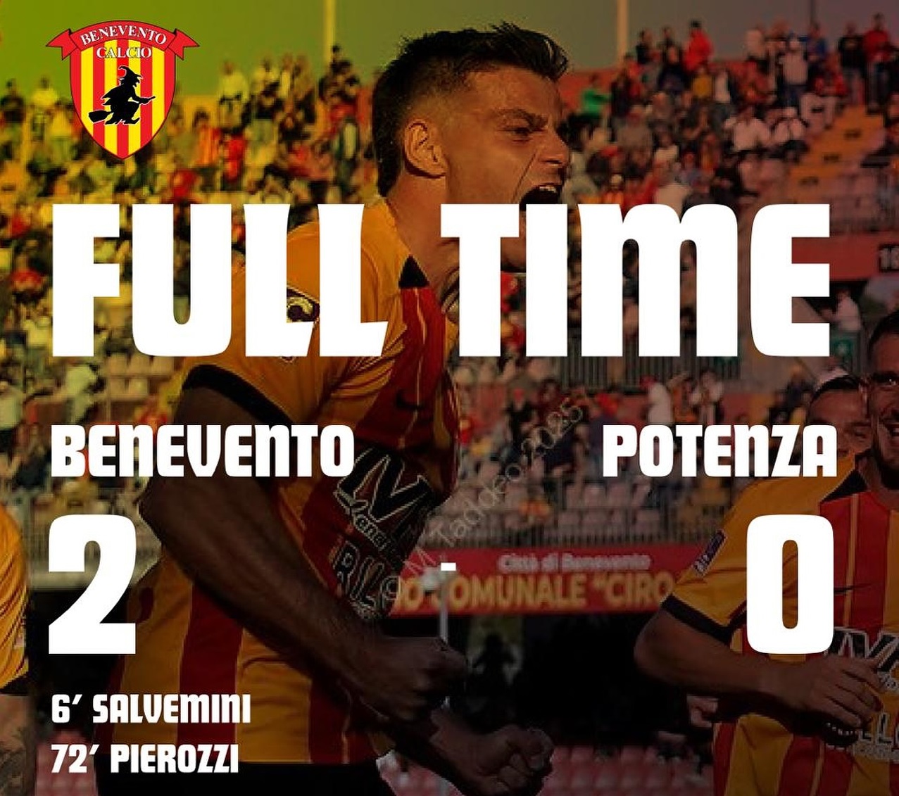 All’8’ il Benevento trova il vantaggio: errore in ripartenza del Potenza, Ceresoli mette un bel pallone in mezzo all’area lucana dove Salvemini, di testa, non perdona.