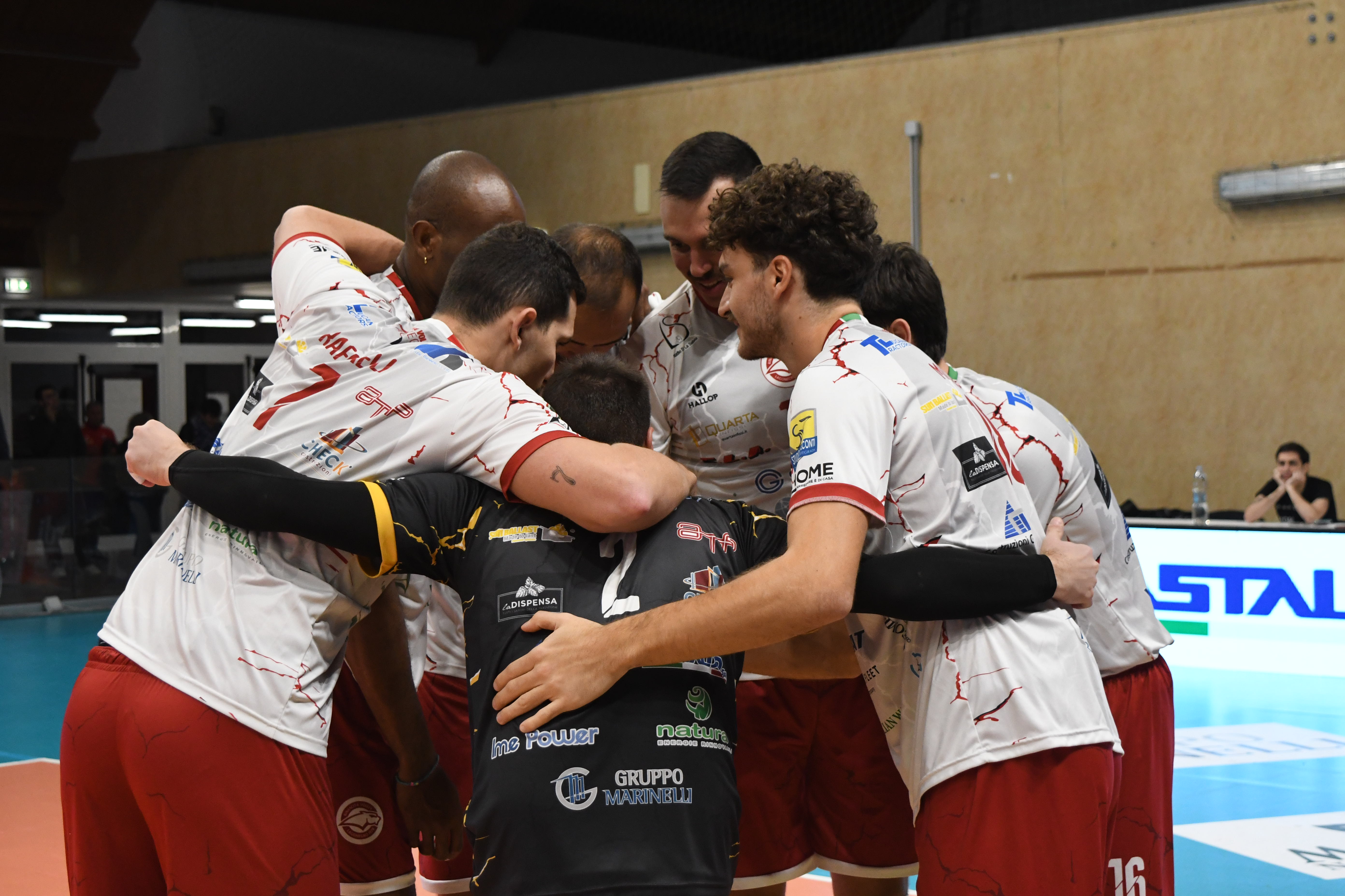 L’attività settimanale si concentrerà su tutti i fondamentali, per migliorare ancora quanto di buono si è visto soprattutto nella sfida con i campani. Le statistiche, in momenti come questi, non mentono e parlano di una Rinascita che ha ben performato, sia di squadra che a livello di singoli. Giacomo Raffaelli, nominato MVP, ha disputato un’eccellente partita in fase difensiva (73% di positività in ricezione), aiutando anche in attacco con 14 punti e il 55%. Superlativo – e non è più una notizia – l’apporto di Diego Cantagalli: 26 sigilli (superata quota 100 in stagione, 102 per la precisione, e secondo miglior marcatore stagionale dietro il portovirese Giulio Pinali), 2 muri e il 59% di positività offensiva. Ma a ben funzionare sono stati i meccanismi di squadra, al cospetto di una delle formazioni candidate alla promozione in SuperLega: 63% in ricezione (88 perfette totali in campionato), 54% in attacco, 13 muri punto e contributo fondamentale da parte dei co-titolari.
