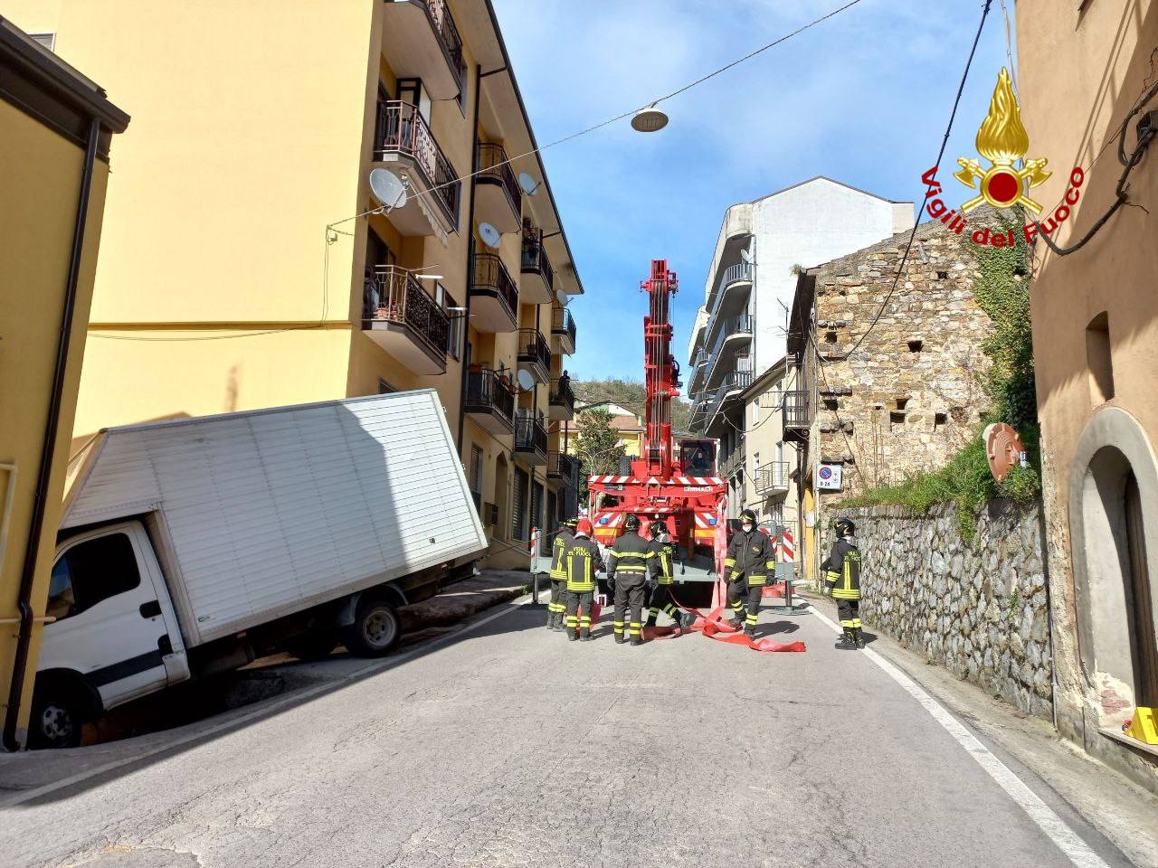 I Vigili del fuoco del Comando Provinciale di Potenza, in data odierna alle ore 16.00 circa, sono intervenuti, con l'ausilio di una autogrù, per il recupero di un furgone in via Vittorio Emanuele nel centro abitato di Tito (Pz).
