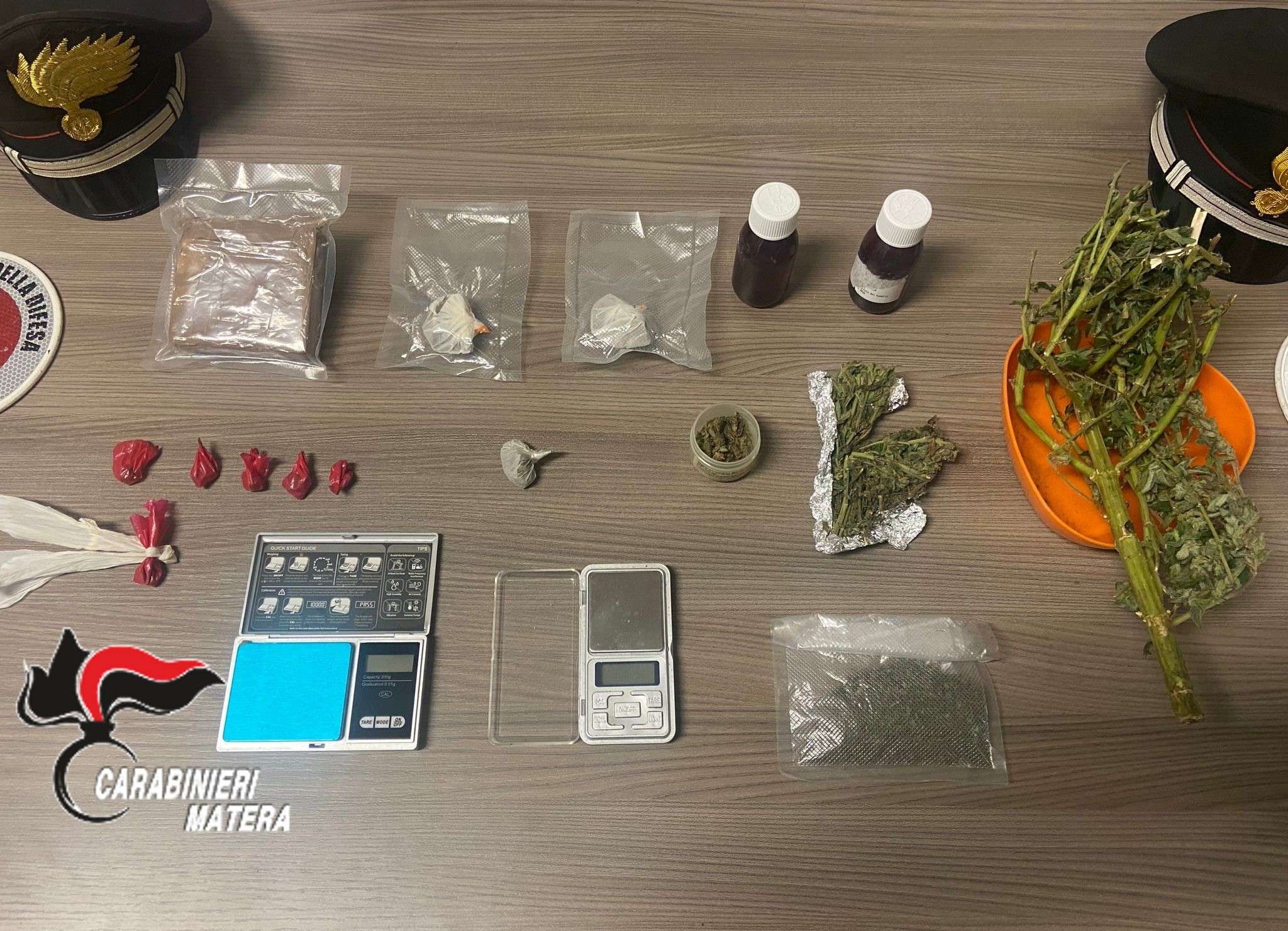 |  A Scanzano Jonico (Matera) un 38enne è stato arrestato per detenzione ai fini di spaccio di sostanze stupefacenti e porto abusivo di armi bianche. All’uomo sono stati sequestrati due coltelli a serramanico, 215 grammi di cocaina nascosti in auto, un tirapugni in metallo e, durante una successiva perquisizione nella sua abitazioni, ulteriori residui di cocaina, oltre a materiale per la pesatura e il confezionamento della droga. Su disposizione della Procura di Matera, l’uomo è stato condotto in carcere, in attesa della disponibilità del braccialetto elettronico che consentirà gli arresti domiciliari. Nel corso degli stessi controlli di prevenzione nei comuni costieri del Metapontino, i Carabinieri hanno segnalato all’Autorità prefettizia nove giovani per uso personale di sostanze stupefacenti: sequestrati oltre 7 grammi di hashish, 0,5 grammi di eroina e 2 grammi di cocaina. |