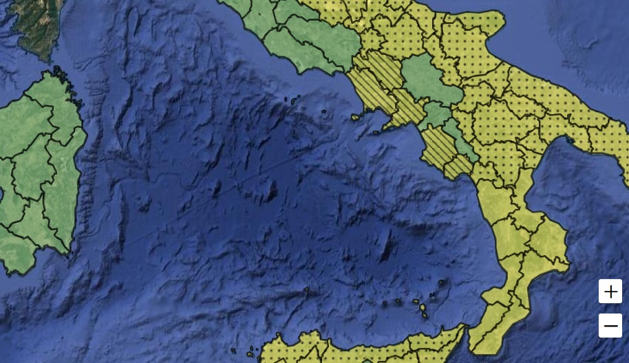 |  La Protezione Civile ha emesso per domani, giovedì 27 novembre 2025, allerta gialla per rischio idraulico, temporali e idrogeologico in diverse aree del Sud Italia, con particolare attenzione a Basilicata, Puglia, Campania e Calabria. Calabria Sulle principali aree del territorio calabrese si segnala ordinaria criticità per rischio idraulico, temporali e idrogeologico. Le zone interessate comprendono sia i versanti ionici che tirrenici, dal nord al sud della regione. In particolare, attenzione ai versanti Jonico Settentrionale e Meridionale e ai versanti Tirrenico Settentrionale, Centro-settentrionale, Centro-meridionale e Meridionale. Basilicata La criticità riguarda soprattutto il rischio temporali sui principali bacini (Basi-A1, A2, B, C, D, E1, E2). Prudenza nelle zone interne e lungo le principali arterie stradali della regione. Puglia La Puglia è interessata da ordinaria criticità per rischio temporali e idrogeologico. Le aree più a rischio includono Basso Fortore, Basso Ofanto, Gargano e Tremiti, bacini del Lato e del Lenne, Tavoliere, Puglia Centrale Adriatica, Sub-Appennino Dauno, Salento e Puglia Centrale Bradanica. Campania In Campania, l’allerta gialla riguarda il rischio idrogeologico, con possibili conseguenze sulle zone di Piana Sele e Alto Cilento, Alto Volturno e Matese, Basso Cilento, Piana Campana, Napoli e area vesuviana, Penisola Sorrentino-Amalfitana e Monti di Sarno e Picentini.