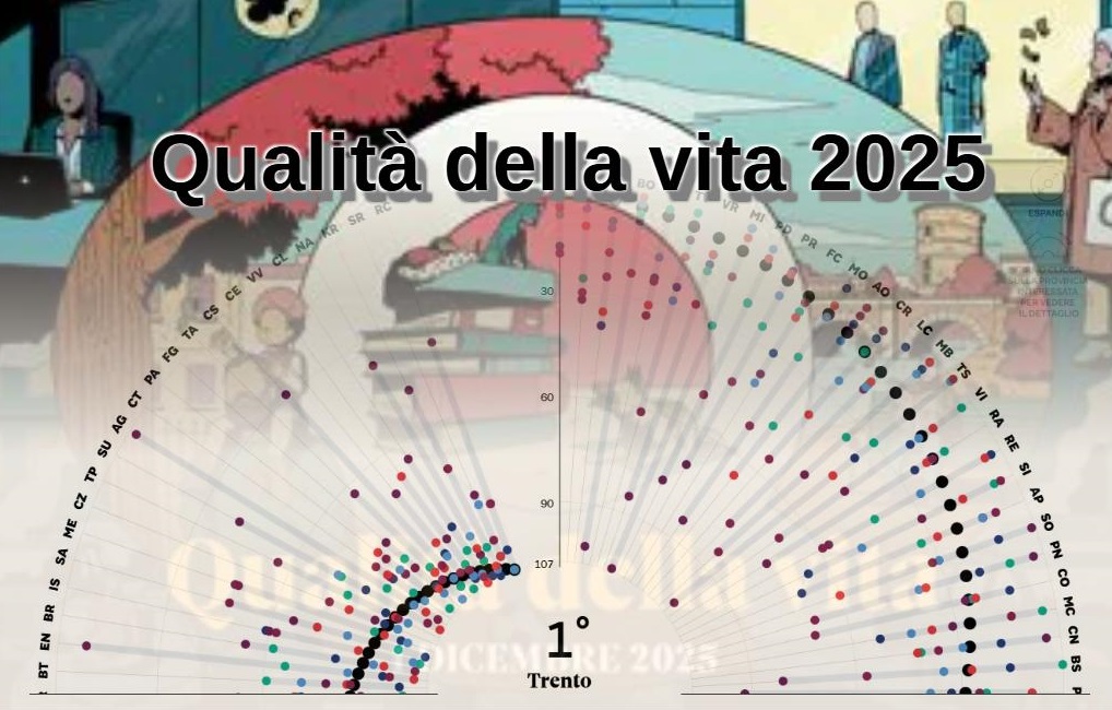 |  La 36ª edizione 2025 dell’indagine “Qualità della vita” del Sole 24 Ore conferma il profondo divario territoriale tra Nord e Sud Italia. Napoli registra un lieve miglioramento, passando dal 106º al 104º posto con 411,4 punti, ma continua a collocarsi nelle ultime posizioni in quasi tutte le categorie: è penultima per “ricchezza e consumi”, 101ª per “ambiente e servizi”, 93ª per “affari e lavoro”, 99ª per “giustizia e sicurezza” e 97ª per “demografia e società”. L’unica voce positiva resta “cultura e tempo libero”, dove raggiunge il 37º posto. In Campania la situazione è leggermente più articolata: Salerno sale al 90º posto con 458,3 punti, mentre Caserta resta in coda al 101º posto (416,9). In Basilicata si registrano segnali incoraggianti: Potenza guadagna quattro posizioni attestandosi all’84º posto (476,94 punti) e Matera sale al 79º posto (485,38 punti). Nel dettaglio, Matera si distingue per “Giustizia e sicurezza” (12ª), mentre Potenza segue al 18º posto. Nei restanti indicatori entrambe mostrano luci e ombre: in “Ricchezza e consumi” Matera è 73ª e Potenza 76ª; in “Affari e lavoro” 83ª e 92ª; in “Demografia e società” 77ª e 98ª; in “Ambiente e servizi” 85ª e 84ª. In “Cultura e tempo libero” Potenza è 78ª, mentre Matera scende al 99º posto. In Puglia, Bari scivola al 67º posto (523,26), Lecce cala all’81º (479,14) e Taranto arretra al 99º (420,7). Situazione critica anche in Calabria: Cosenza risale leggermente ma resta 100ª, Vibo Valentia sale al 102º posto, Crotone resta stabile al 105º e Reggio Calabria chiude la classifica nazionale. Il quadro complessivo conferma che, nonostante qualche miglioramento isolato, molte province del Mezzogiorno continuano a occupare le retrovie, con pesanti ripercussioni su economia, servizi e qualità della vita quotidiana.