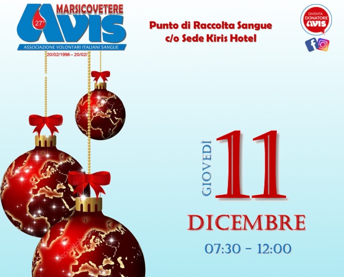 | Avis Marsicovetere. Il regalo di Natale più bello: donare sangue e plasma |