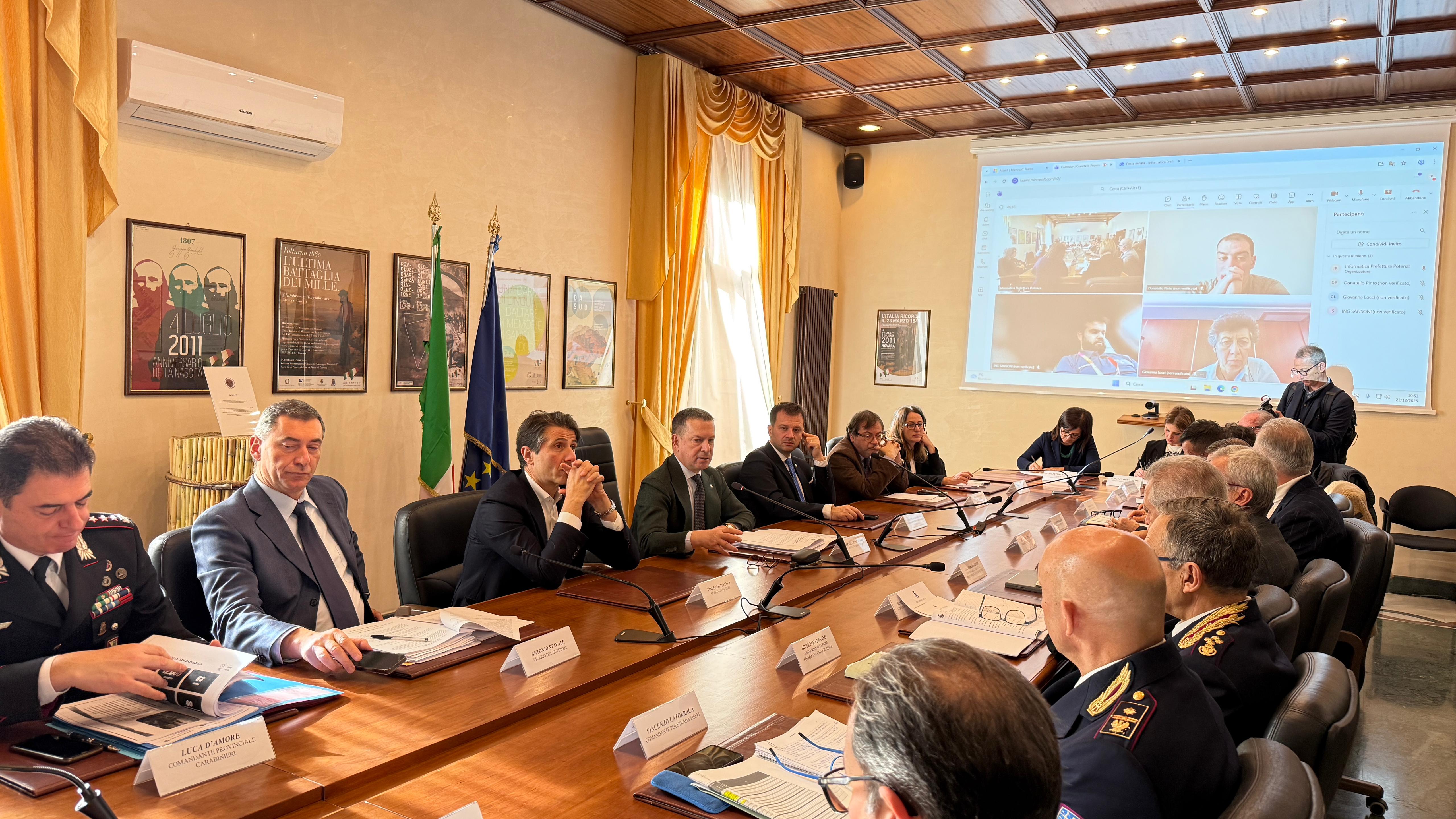 |  Occhi puntati su Potenza e provincia per le festività natalizie e l’arrivo della Fiamma Olimpica di Milano Cortina 2026. Il Prefetto Michele Campanaro ha presieduto il Comitato provinciale per l’ordine e la sicurezza pubblica, definendo il piano di vigilanza integrata per concerti, eventi e il passaggio della Torcia. Rafforzati i controlli contro fuochi pirotecnici e materiali esplosivi, con operazioni preventive già attuate. Per i concerti e la City Celebration in Piazza Don Bosco previsti percorsi di esodo, personale antincendio e soccorritori, oltre al potenziamento delle Forze di Polizia. Il Viaggio della Fiamma attraverserà città e borghi lucani, valorizzando il territorio e i valori dello sport in massima sicurezza. Di seguito il comunicato