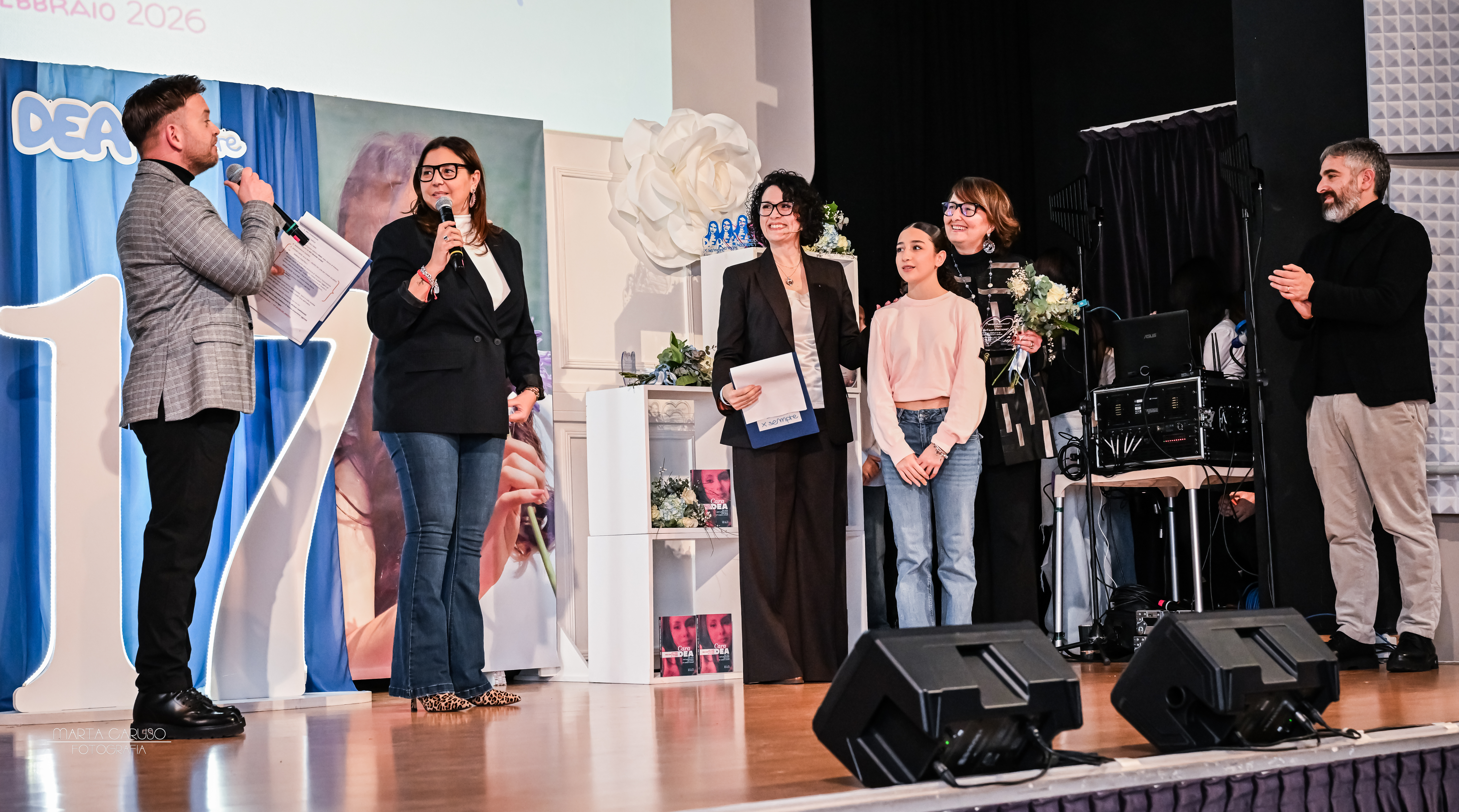 .jpg) La serata, densa di emozioni, è culminata con la presenza sul palco delle amiche del cuore di Dea, che tutte insieme hanno spento la candelina dei 17 anni della loro amica speciale, nel cui ricordo l’associazione “Dea per sempre” va avanti ogni giorno, raccontando l’amore, la speranza e tutto il bello della vita, nel nome di una ragazza meravigliosa che non smetterà di essere un faro per l’impegno di chi l’ha tanto amata. Dea per sempre.