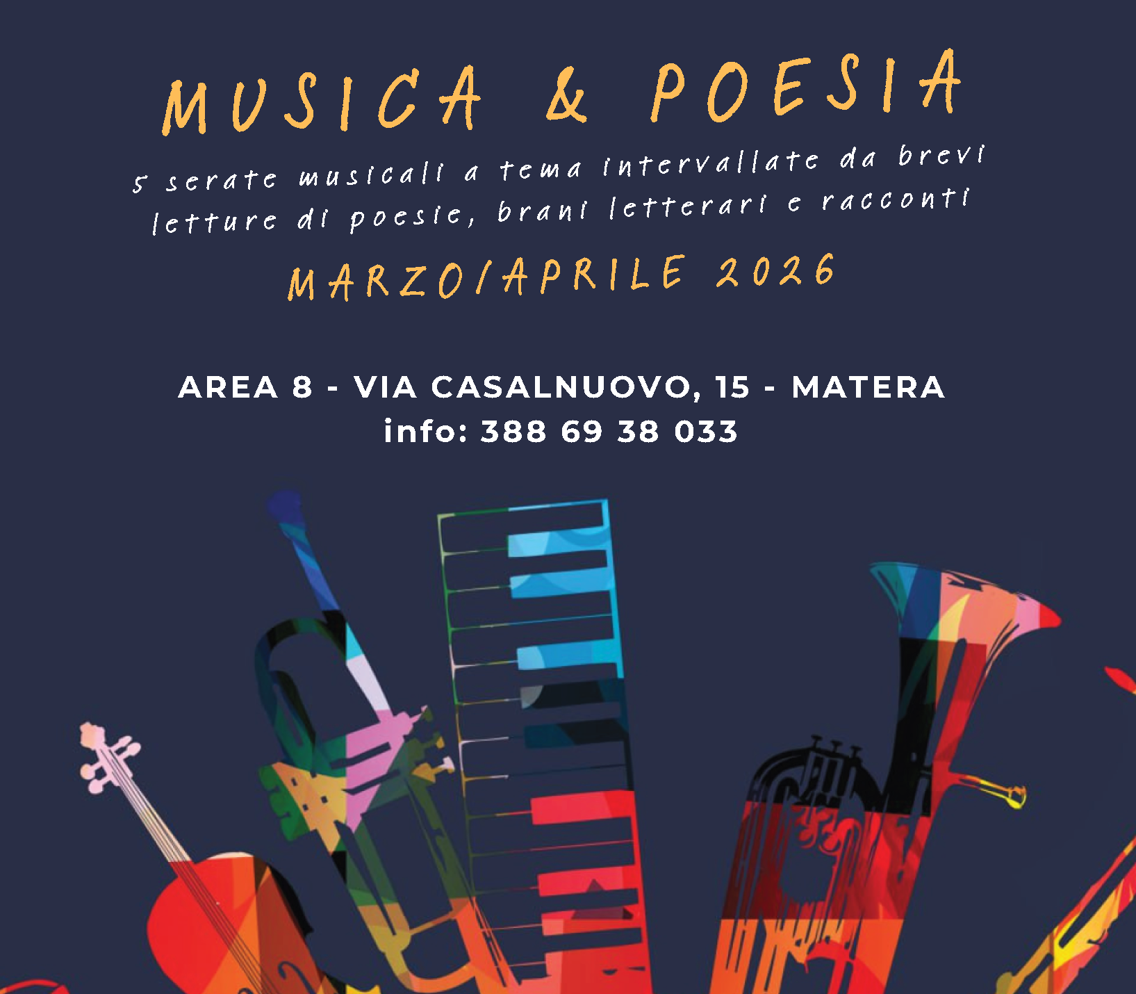 Si terrà il prossimo 16 aprile alle 21:00 ad Area8* in via Casalnuovo 15 a Matera il quarto concerto della rassegna Musica & Poesia, cinque serate musicali a tema, intervallate da brevi letture di poesie, brani letterari e racconti, curata dal Circolo Radici APS.