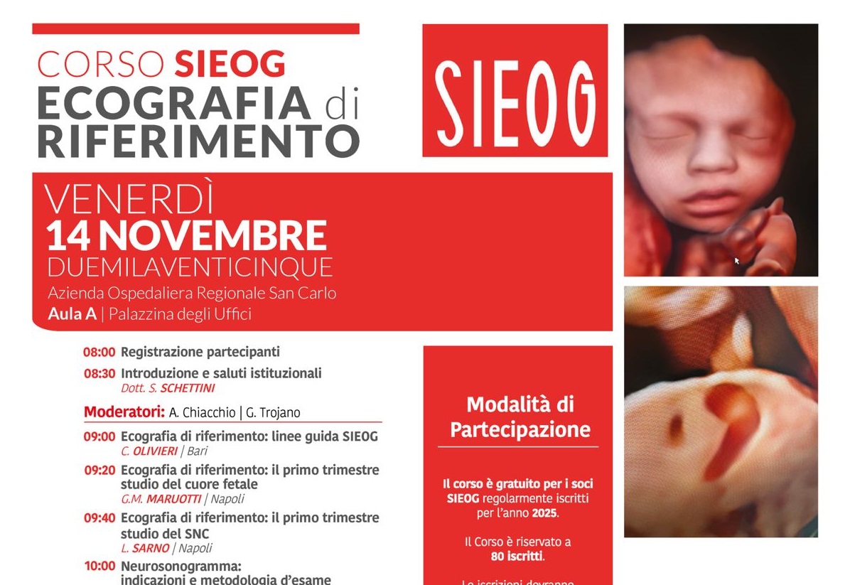L’Azienda Ospedaliera Regionale San Carlo ha organizzato un corso di alta formazione sul tema “Ecografia di Riferimento”, in programma venerdì 14 novembre 2025, nella sala A della Palazzina degli uffici dell’Aor a Potenza, rivolto a medici, ostetriche e infermieri.