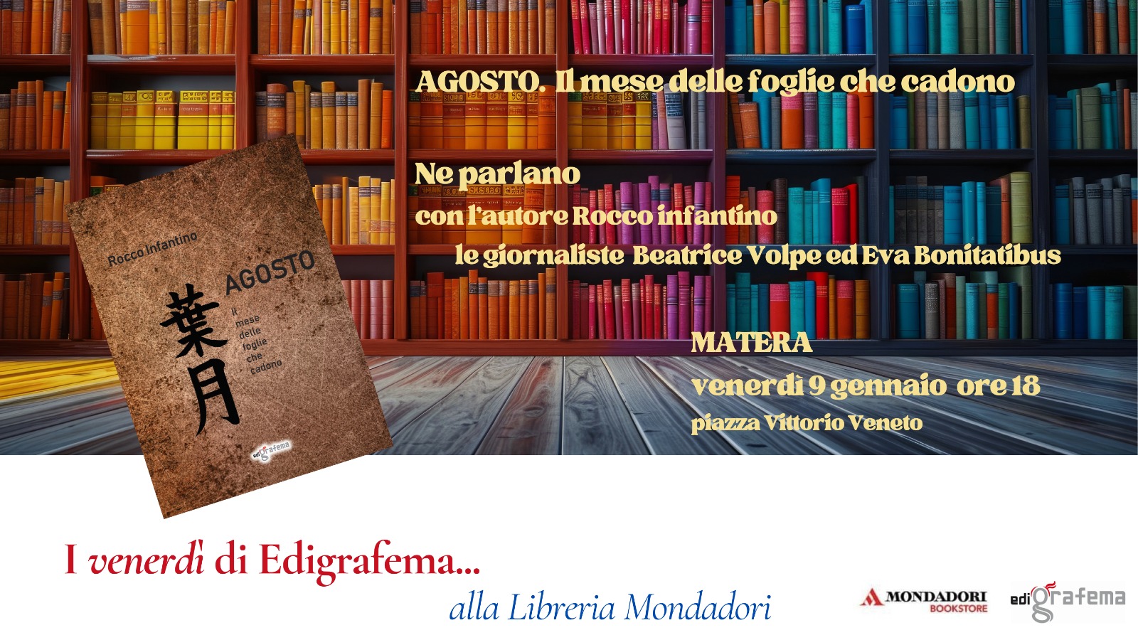 Il romanzo “Agosto. Il mese delle foglie che cadono” di Rocco Infantino, pubblicato dalla casa editrice Edigrafema, verrà presentato a Matera venerdì 9 gennaio, alle ore 18.00, nella libreria Mondadori, in piazza Vittorio Veneto. Dialogheranno con l'autore le giornaliste Bea...-->continua |