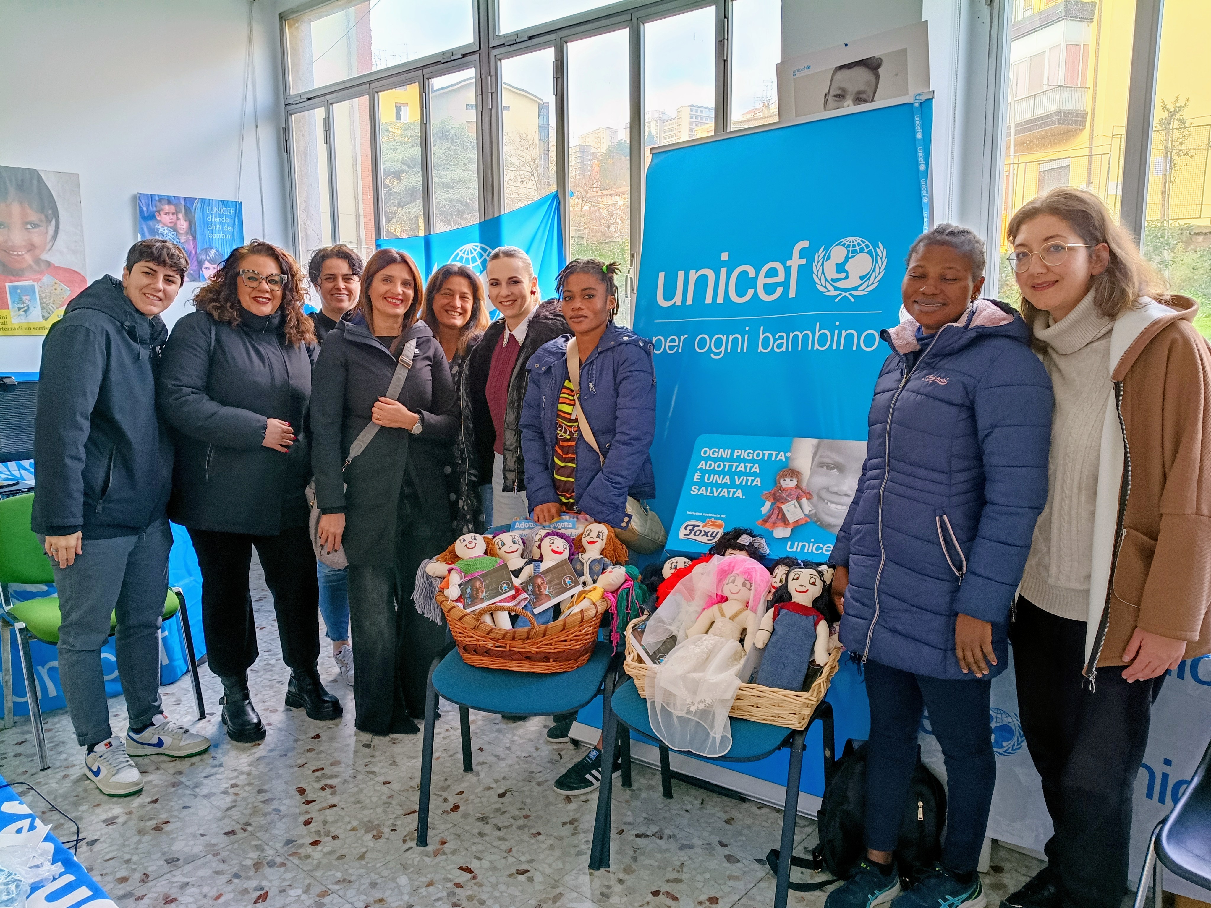 3/12/2025 - Un segno d'amore. Le rifugiate ospiti a Potenza del progetto SAi, donano all'UNICEF piggotte salvavita