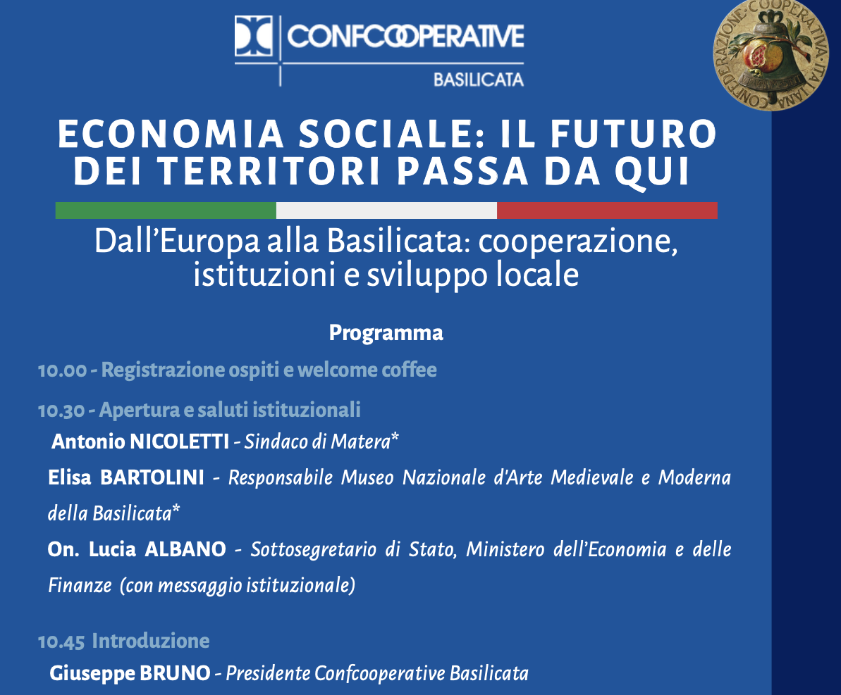 25/02/2026 - Confcooperative Basilicata: l’Economia Sociale infrastruttura strategica, evento a Matera il 27 febbraio