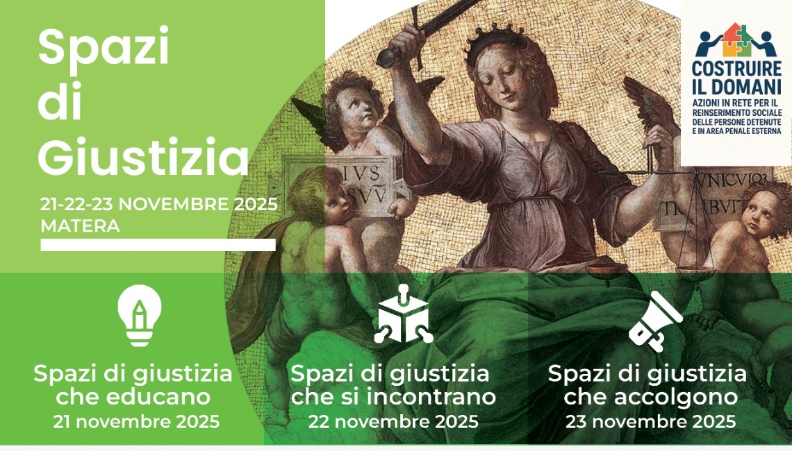 L’associazione nazionale SEAC – Coordinamento Enti e Associazioni di Volontariato Penitenziario – e Disma ODV ETS organizzano “Spazi di Giustizia”, un fine settimana di iniziative che si svolgerà a Matera dal 21 al 23 novembre 2025. Il programma si articola in momenti di dia...-->continua |