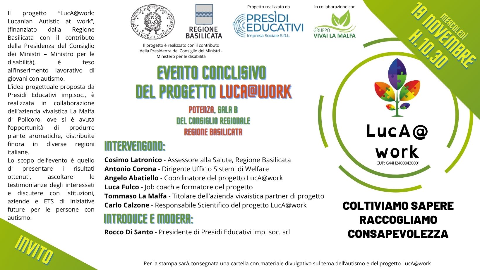 18/11/2025 - Evento conclusivo del progetto Lucanian Autistic at Work – LucA@work
