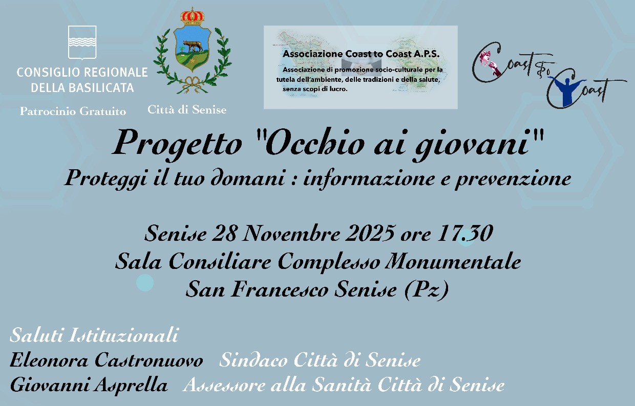 "Occhio ai Giovani" è un progetto promosso dall’Associazione Coast to Coast, formata da medici volontari che lavorano in Toscana ma originari della Basilicata, in collaborazione con il Comune di Senise.