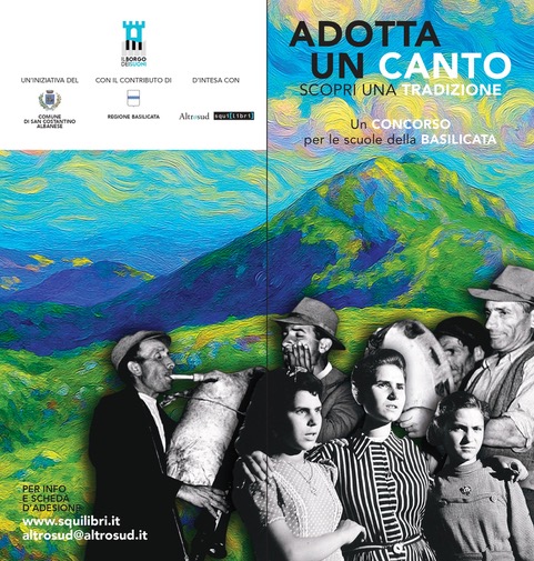 24/09/2025 | Al via la seconda edizione del concorso “Adotta un canto, scopri una tradizione” che, impostato come un viaggio nel cuore delle tradizioni musicali della Basilicata, mira a sensibilizzare le giovani generazioni sull’importanza di canti e suoni irriducibili ad altre espressioni musicali e intrecciati strettamente alla storia delle comunità di appartenenza. In questa direzione "l’adozione di un canto", attraverso libri con supporti audiovisivi, può condurre davvero alla scoperta di un’intera tradizione, oltre che attivare salutari processi di salvaguardia di uno sterminato patrimonio culturale.