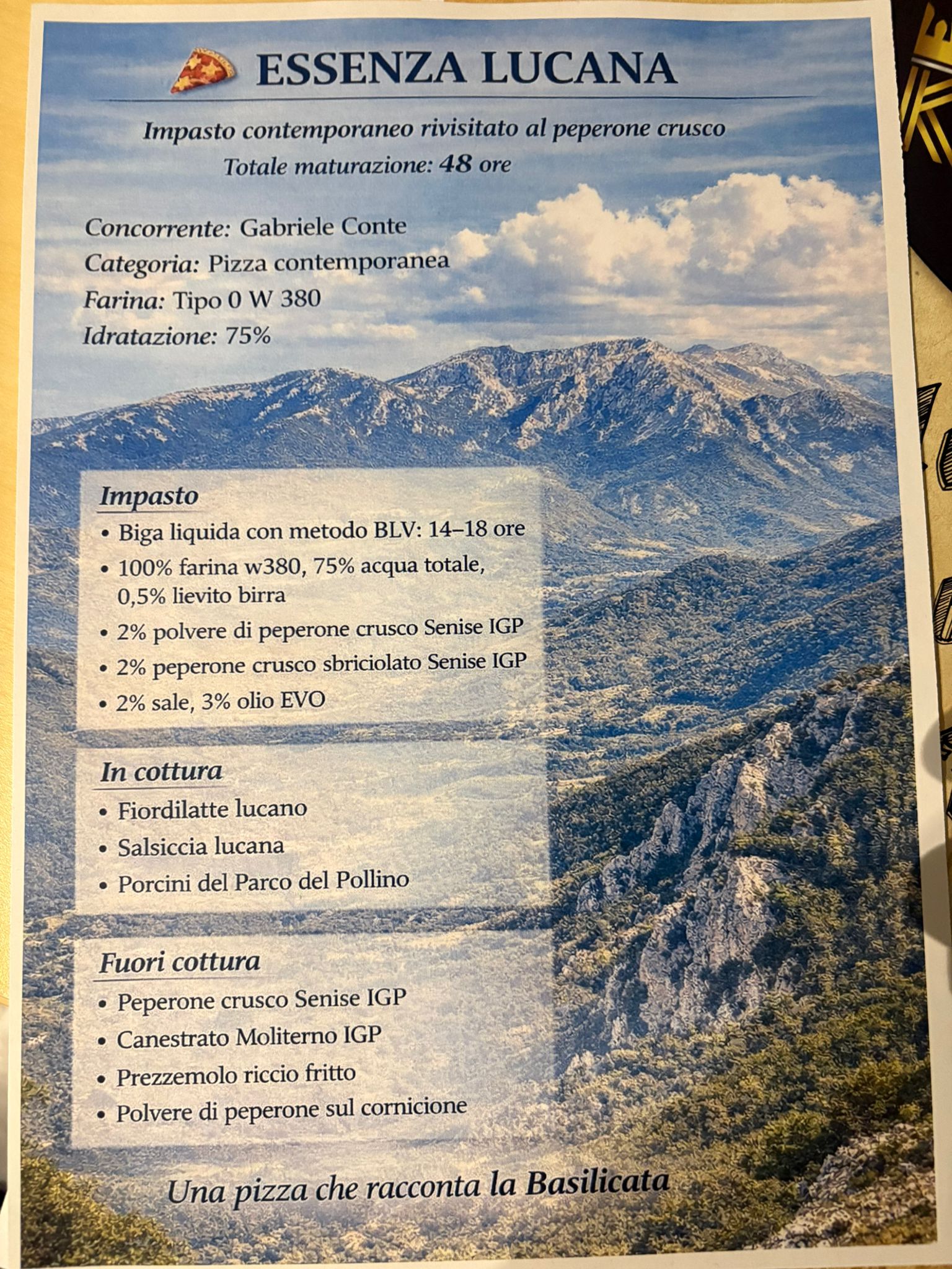 In questo scenario di altissimo livello tecnico e qualitativo, la pizza Essenza Lucana ha saputo emergere, conquistando il podio e attirando l’attenzione della giuria per la capacità di valorizzare i prodotti tipici lucani, trasformandoli in un’esperienza contemporanea senza tradirne l’autenticità. Un connubio riuscito tra tradizione e innovazione, che ha convinto gli esperti del settore e certificato l’eccellenza della proposta presentata.