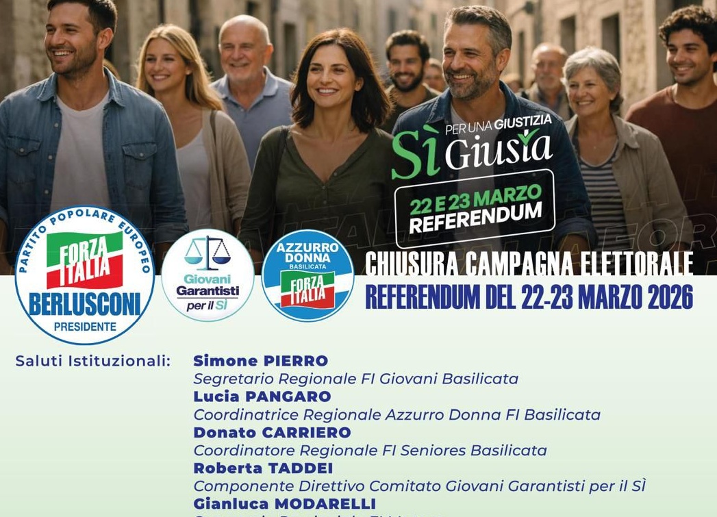 Giovedì 19 marzo alle ore 17:00, presso il Grande Albergo di Potenza, Forza Italia Basilicata chiuderà la campagna referendaria per il Sì al prossimo referendum sulla giustizia del 22 e 23 marzo. Sarà un momento di confronto e di approfondimento sulle ragioni di una riforma ...-->continua |
