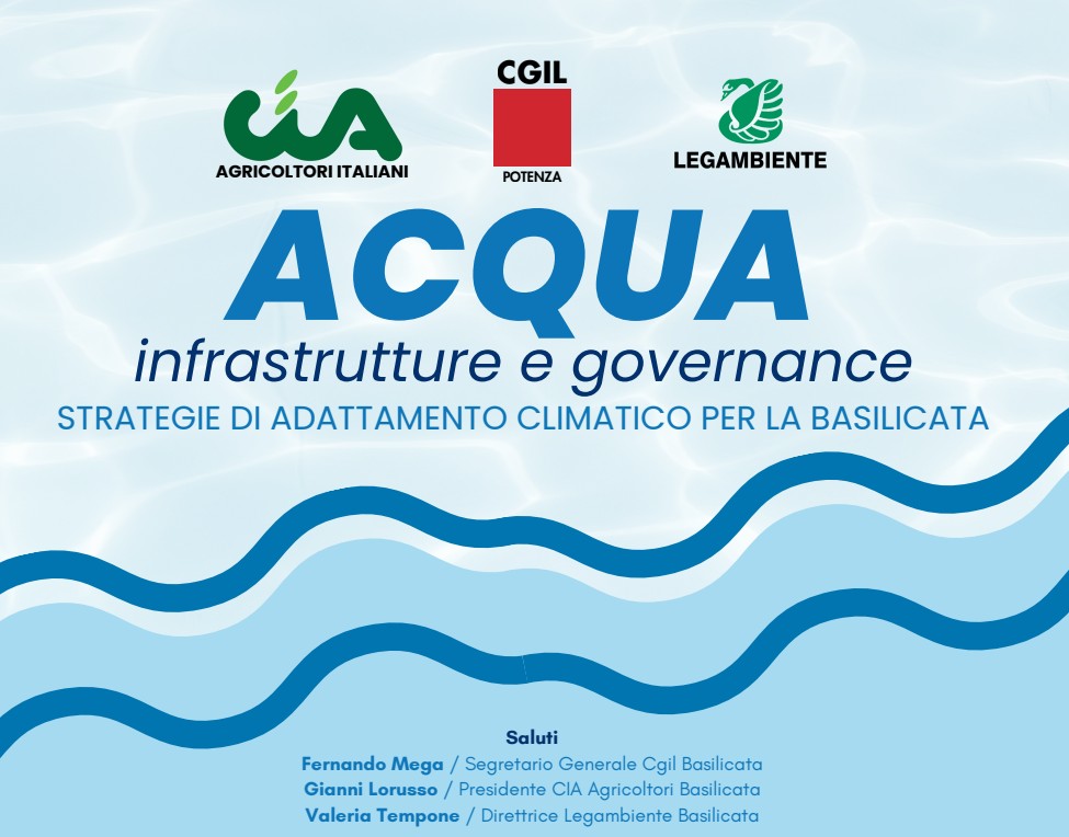 Cia-Agricoltori, Cgil e Legambiente hanno promosso per domani venerdì 30 gennaio a Potenza (Park Hotel, ore 9,30) un convegno dal tema “Acqua, infrastrutture e governance. Strategie di adattamento climatico per la Basilicata”.