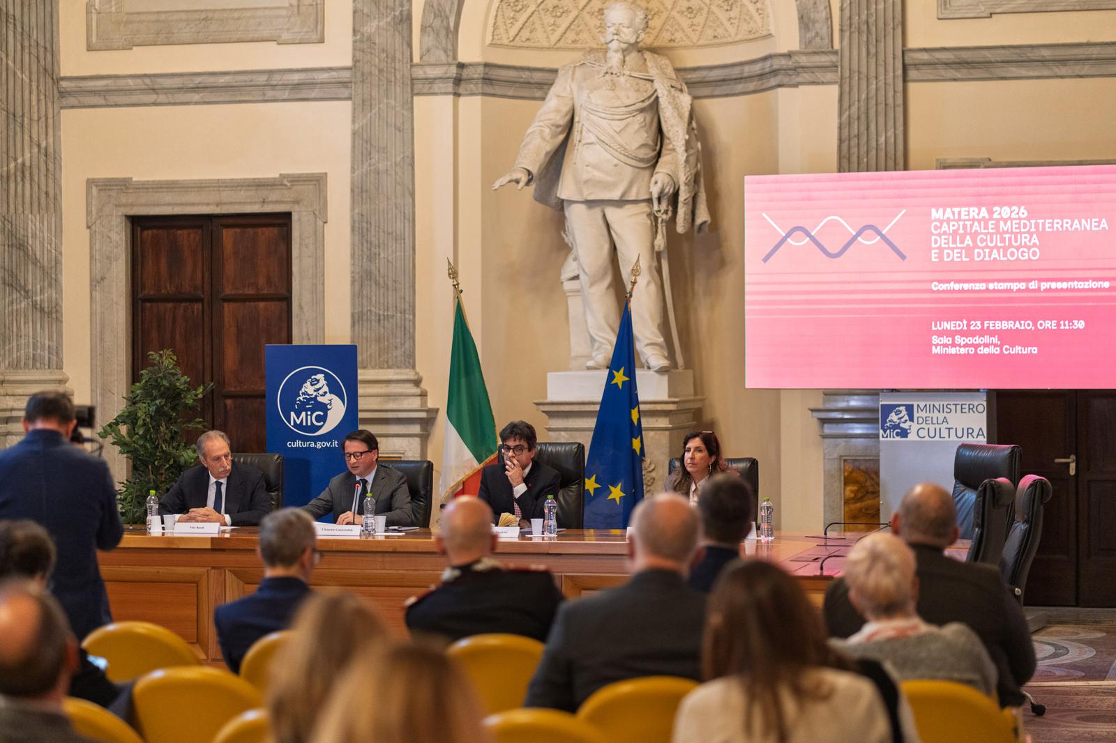 Si è svolta questa mattina nella Sala Spadolini del Ministero della Cultura la presentazione del programma di Matera Capitale Mediterranea della Cultura e del Dialogo 2026.