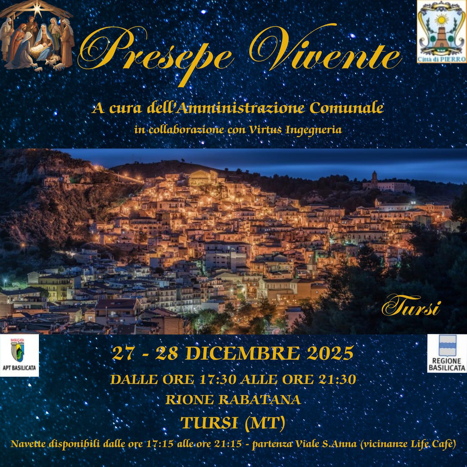 Tursi si prepara a rivivere la magia del Natale con una delle manifestazioni più suggestive e attese del periodo festivo: il Presepe Vivente, in programma venerdì 27 e sabato 28 di...-->continua