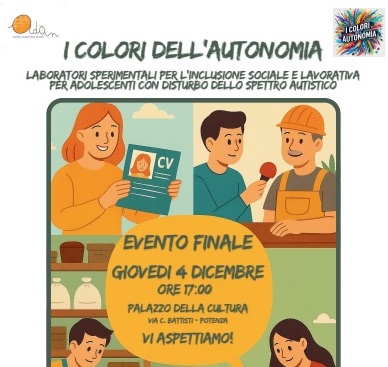 Il 4 dicembre 2025, dalle ore 17.00, nel Palazzo della Cultura a Potenza si svolgerà l'evento conclusivo del progetto “I colori dell’Autonomia: Laboratori sperimentali per l’inclus...-->continua