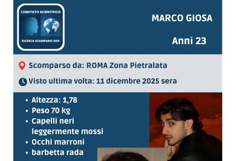 Dal 10 dicembre 2025 non si hanno più notizie di Marco Giosa, 23enne di Tito (PZ) e studente universitario a Roma. Negli ultimi giorni sarebbe stato avvistato a Cologno Monz...-->continua