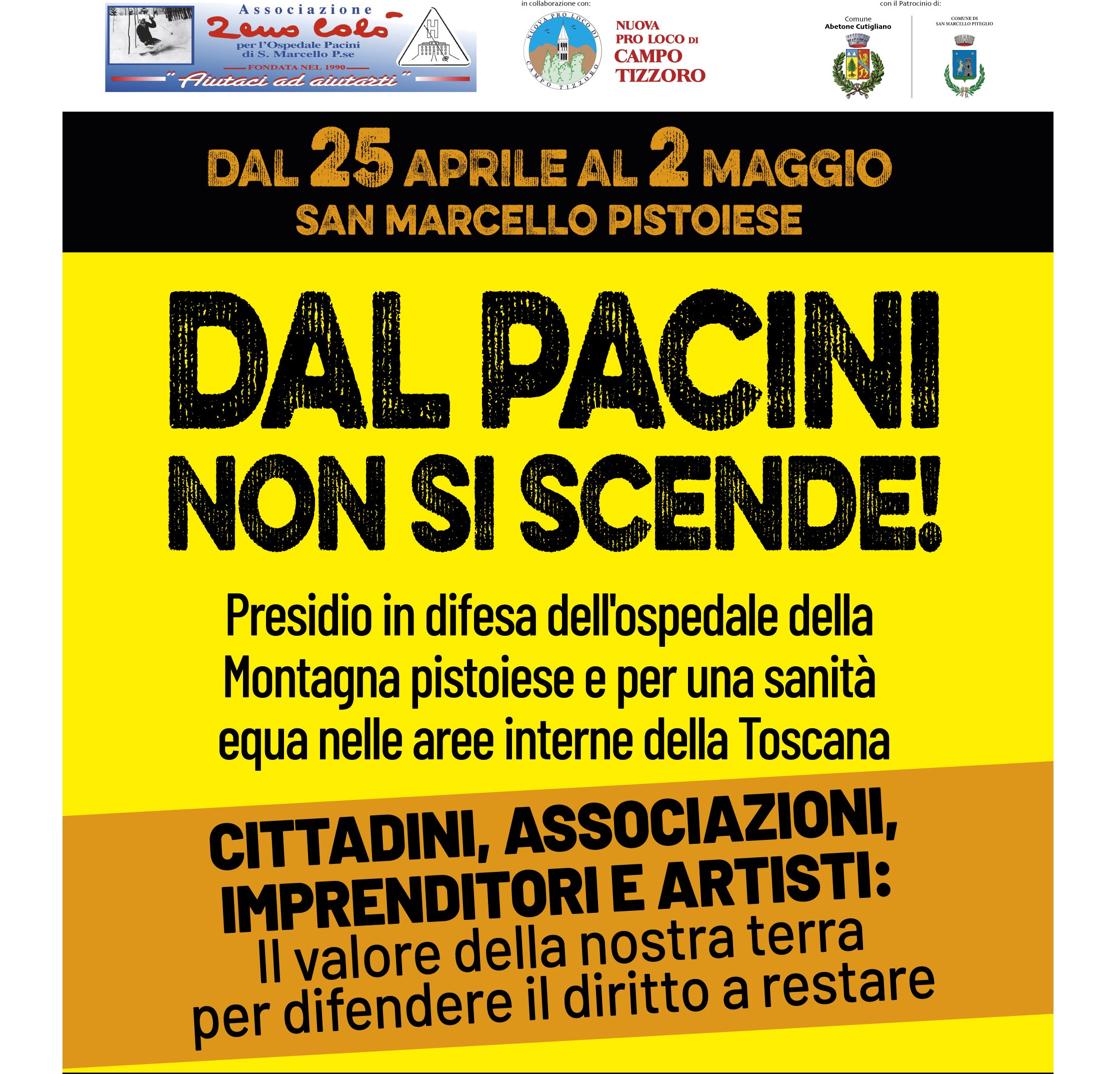 Dal 25 aprile al 2 maggio San Marcello Pistoiese diventerà il cuore pulsante della mobilitazione per la sanità delle aree interne. L’Associazione Zeno Colò organizza il presidio civico “Dal Pacini non si scende!”, con presenza continua vicino all’Ospedale Lore...-->continua |