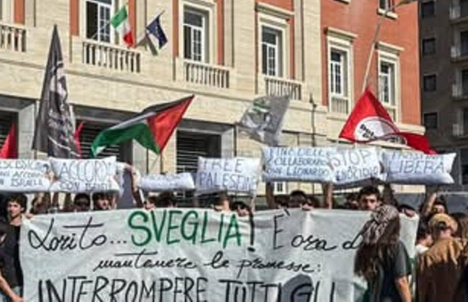 30/10/2025 - Cuscini e protesta alla Federico II: studenti chiedono a Lorito di rompere con Israele