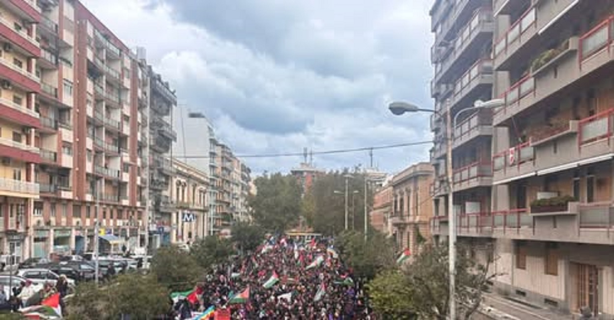 3/10/2025 | Bari si è mobilitata oggi in segno di solidarietà al popolo palestinese e alla Global Sumud Flotilla. La manifestazione, conclusasi in largo Sorrentino dietro la stazione centrale, ha visto la partecipazione di circa ottomila persone secondo la Cgil. Il corteo, composto da studenti e sindacati di base, ha attraversato il sottopasso Sant’Antonio tra fumogeni e bandiere palestinesi. Tra i partecipanti anche il cantautore Caparezza, che ha sottolineato l’importanza di mantenere accesi i riflettori sulla questione palestinese. Nel frattempo, a Taranto, una parte dei manifestanti ha raggiunto la Prefettura per un sit-in, chiedendo responsabilità politica sull’attracco della nave Seasalvia e denunciando il coinvolgimento del porto in operazioni legate all’aviazione militare israeliana. |