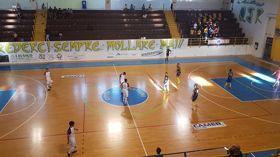Cronaca. Mister Volpini per la Coppa deve rinunciare a Boschiggia (squalificato) e Cospito (fuori sede) e opta per il seguente quintetto iniziale: D’Amelio, Fusco, Caetano, Bidinotti e Murò. Risponde l’Ostuni con Caramia, Lisi, Solidoro, Salamida, Schiavone.