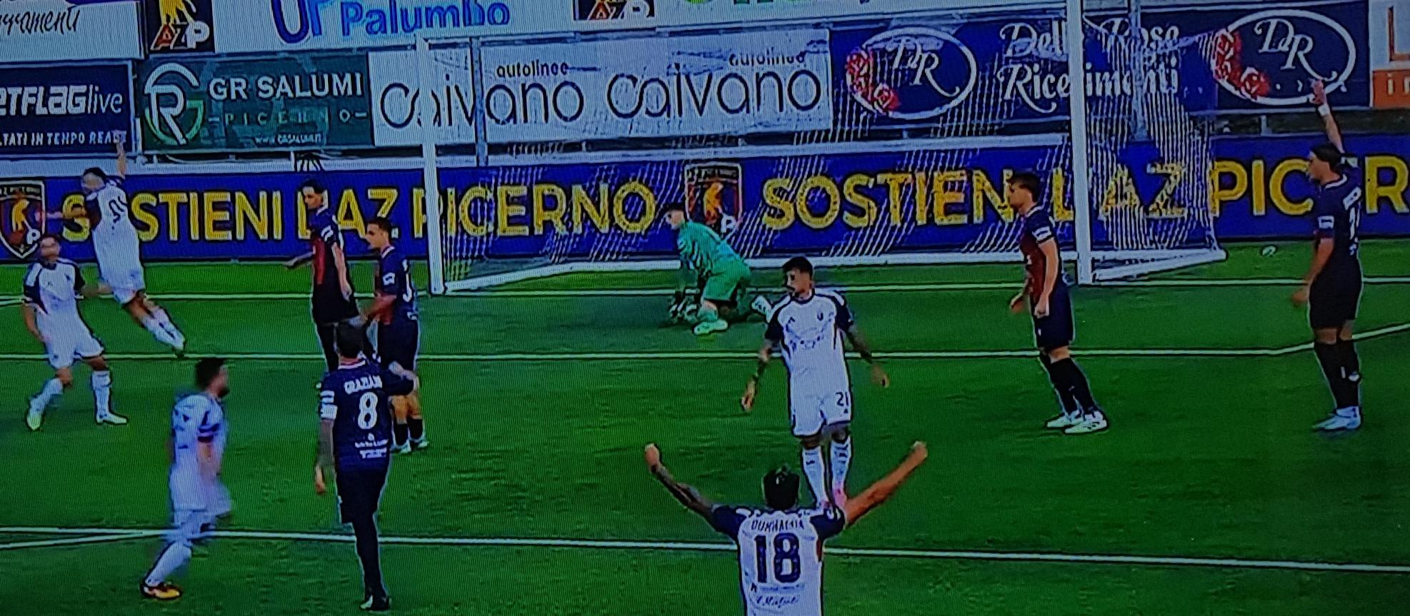 In avvio di ripresa ci sono Santarcangelo ed Esposito per gli ammoniti Frison e Maselli, con la squadra che torna al 4-2-3-1. Ma la scintilla non scocca, nonostante Esposito ed Energe provino ad inventare. Per vedere una vera occasione bisogna aspettare il 20’, quando, su punizione di Esposito, la sfera arriva a Veltri che dal limite batte al volo e sfiora l’incrocio. Il ritmo non sale ed i campani gestiscono senza difficoltà e sono ancora loro a mancare l’opportunità per il tris su calcio piazzato, con Vano, che di testa non approfitta di un’incertezza di Summa. Ma l’epilogo è ormai segnato.