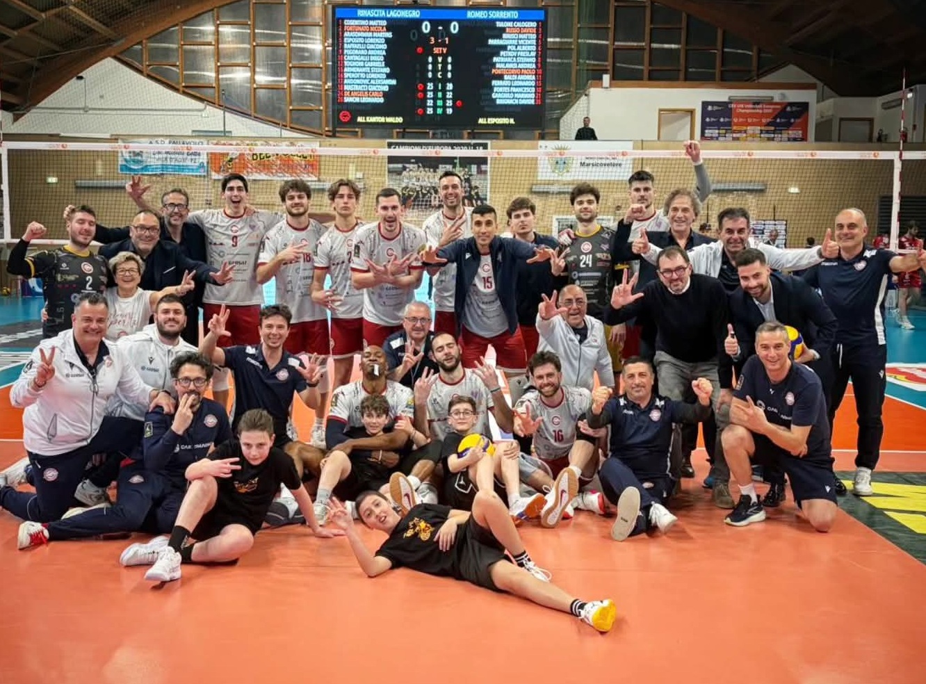 ROMEO SORRENTO: Tulone (2), Russo (L1), Iurisci, Parraguirre (1), Pol (11), Petkov (5), Patriarca (4), Malavasi (9), Pontecorvo (L2), Baldi (15), Ferrato (1), Fortes (8), Gargiulo, Brignach (8). All.: Nicola Esposito