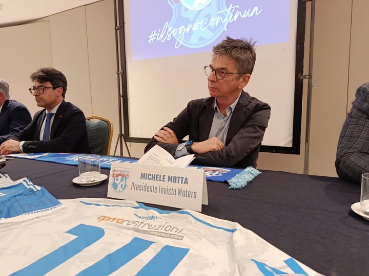 Durante la conferenza stampa all’hotel San Domenico è stato ufficializzato il passaggio di presidenza da Francesco Nicoletti a Michele Motta, alla presenza delle istituzioni locali. Motta, già alla guida del club a fine anni Ottanta e da anni vicino alla società come sponsor, ha assunto il timone. Il sodalizio, inoltre, dal prossimo campionato tornerà a chiamarsi semplicemente “Matera”, recuperando la storica identità cittadina. Tra i prossimi obiettivi, l’allargamento della compagine societaria con nuovi partner.